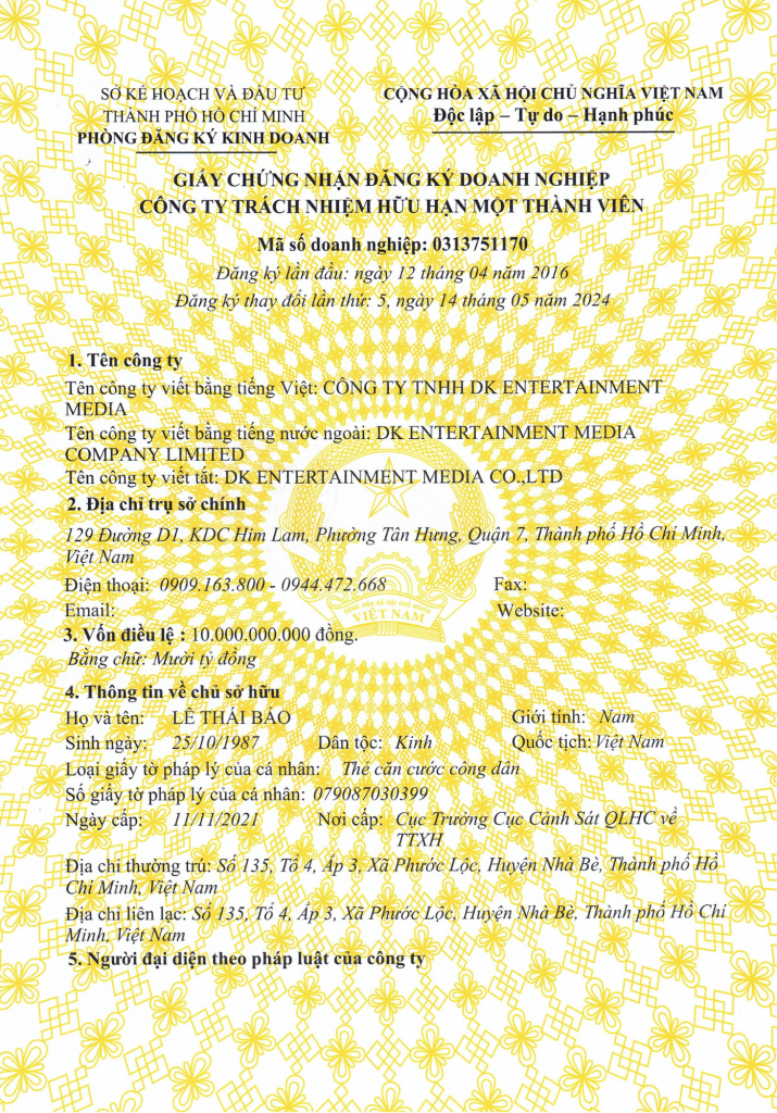 Thông tin GPKD công ty – DK Entertainment Media