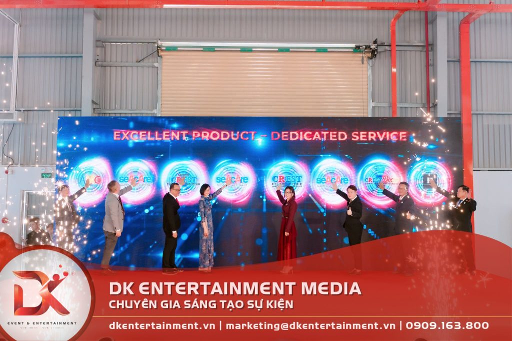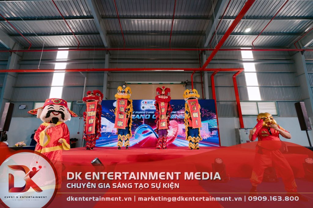 Việc tổ chức một sự kiện khánh thành ngay tại thực địa nhà máy đòi hỏi khả năng điều phối và lắp đặt thực địa cực kỳ chuẩn xác. Crest Furniture Holding lựa chọn DK bởi chúng tôi sở hữu hệ sinh thái toàn diện từ thiết kế visual đến nhân sự biểu diễn chuyên nghiệp.